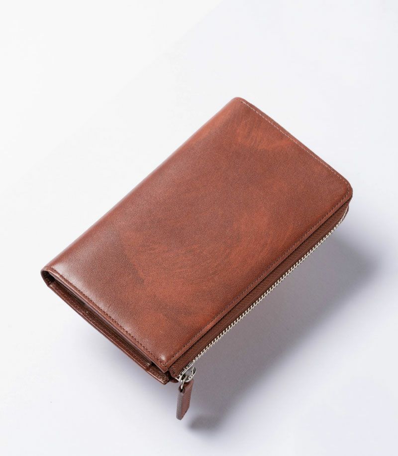 ラウンドファスナーハニーセル長財布|シラサギレザー